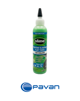 Sellante antipinchadura para neumáticos con cámaras envase 16 oz para ser utilizado como referencia en dos neumáticos de moto o un neumático de automóvil.